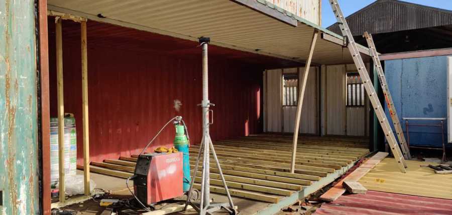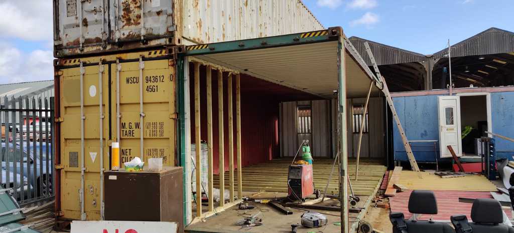 Need an extra wide shipping container? Shipping containers are often used as the basic structure for shipping container conversion projects i.e. shipping container offices, clubhouses, garages, classrooms, welfare cabins, workshops etc. They make the perfect secure, anti-vandal site accommodation, but as shipping containers are manufactured in a standard width of 8ft, this can sometimes prove restricting if a larger space is required. Space Saver Solutions build brand new containers that can give you a width of up to 16ft, but if you need something really wide they are too big to transport as a whole. Our solution to this is to join shipping containers together, side by side, to give a width of 16ft, 24ft or even 32ft. We prepare these containers in our workshops, transport them as individual units, and then join them together on site.